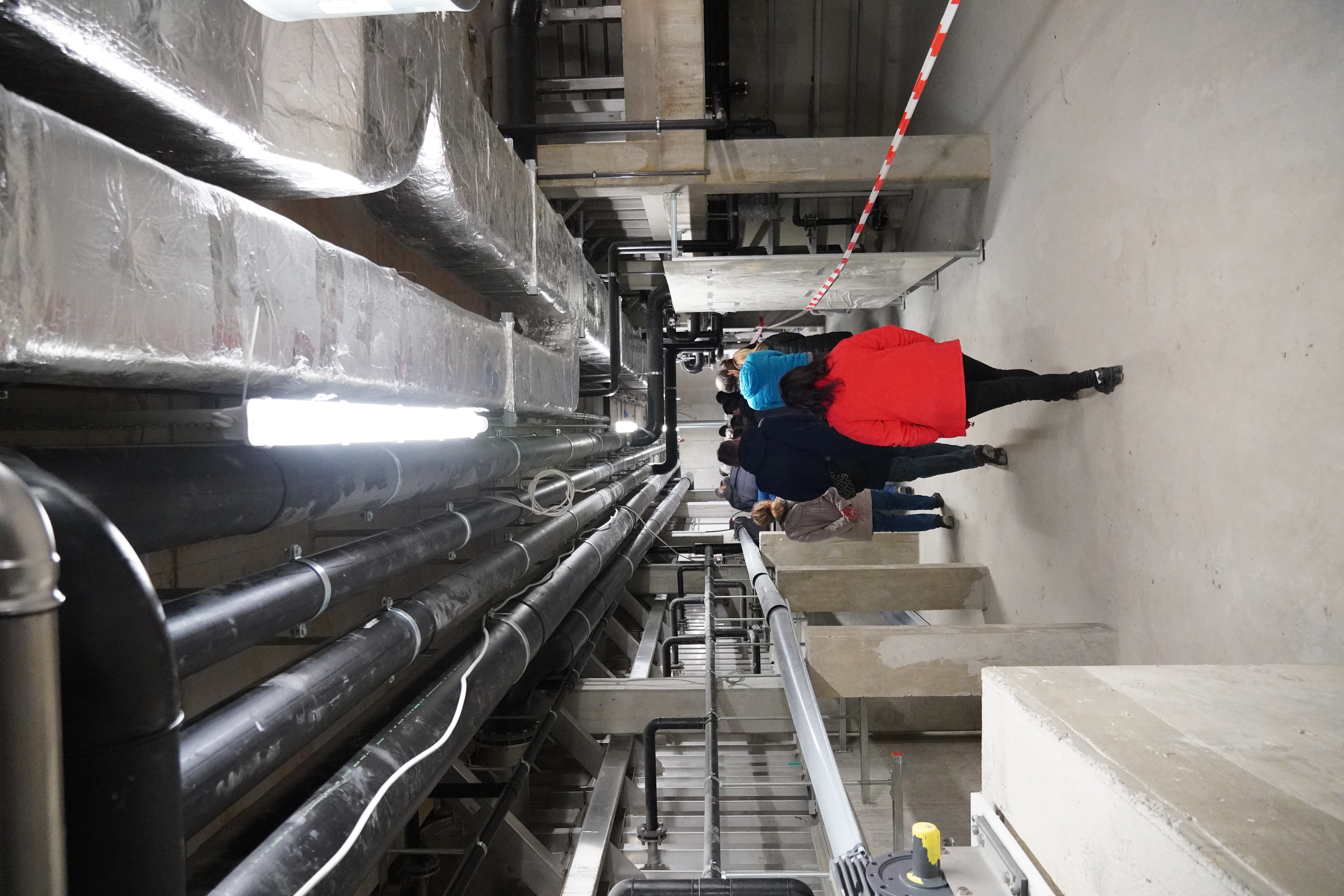Zum Abschluss des Rundgangs ging es ins Untergeschoss, welches für Besucher normalerweise nicht zugänglich ist. Dort befindet sich die komplette technische Infrastruktur des Bades, darunter Wasser- und Badetechnik, Luft- und Klimatechnik sowie die Energie- und Wärmetechnik. „Gerade hier wird deutlich, wie viel Technik notwendig ist, damit ein Hallenbad sicher, effizient und zuverlässig betrieben werden kann“, so der Stadtwerke-Chef.
