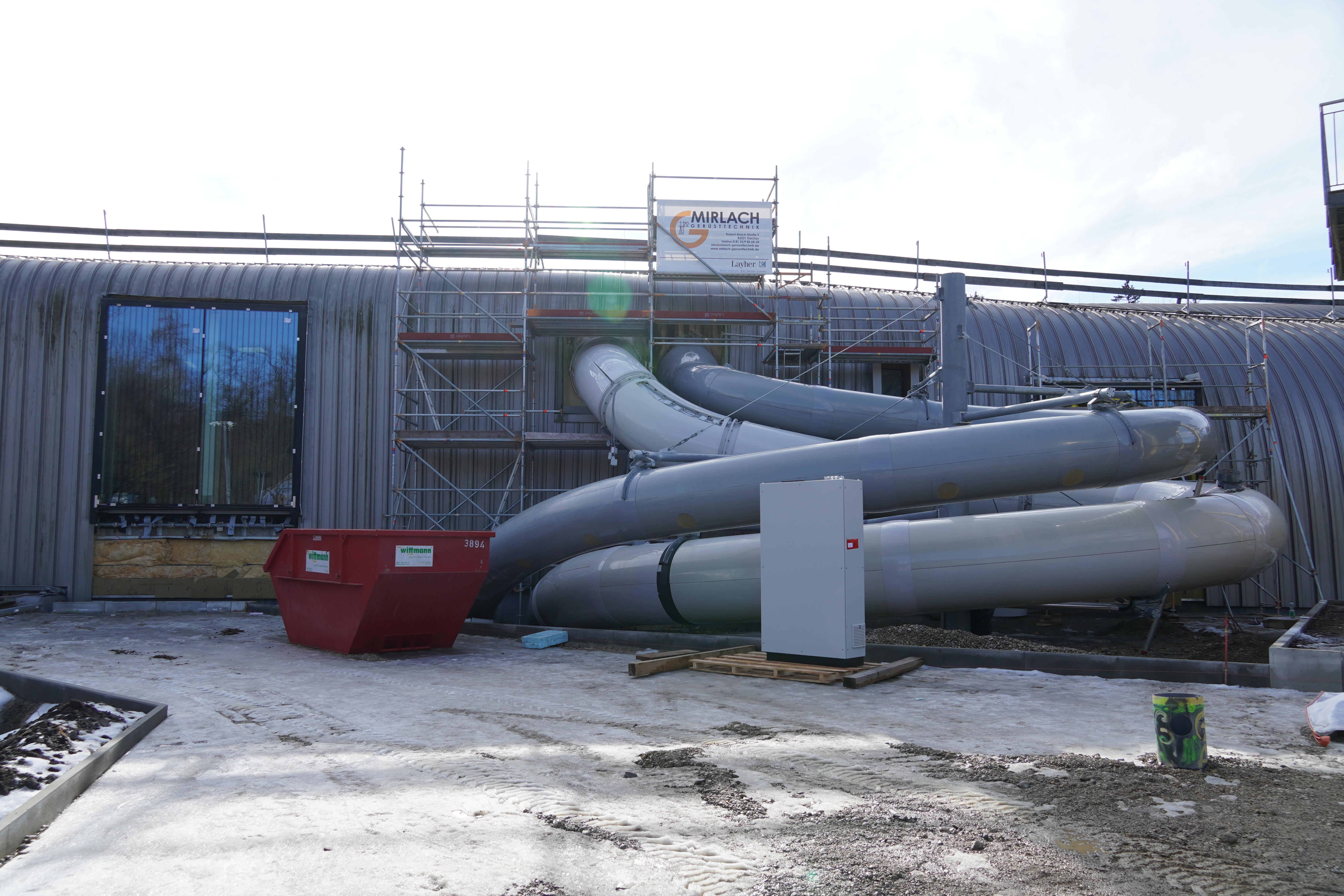 Bildunterschrift: Eines der zukünftigen Highlights: Die beiden fast 40 Meter langen Rutschen, eine Turbo- und eine Familienrutsche.